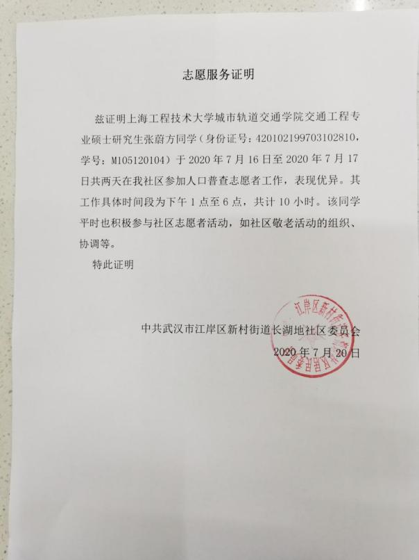 “立大志,明大德,担大任,成大才”,志愿服务的种子早在张蔚方心中深深埋藏。2020年寒假期间,他主动担任社区志愿者,参与社区人口普查志愿者工作,负责社区网格人口信息的更新录入工作。除此之外,他也会在第一时间响应社区委员会号召,积极参与社区敬老活动的组织与协调等。