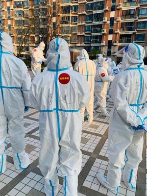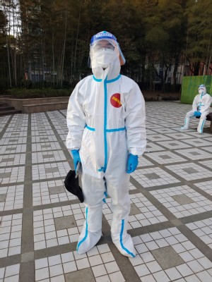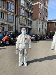 支部党员丁小兵说:“3月份以来,我积极响应小区居委会号召,加入抗疫志愿者队伍。第一次穿上防护服,感觉特别的闷,眼镜上还不断地起雾,视线模糊,但我顾不上这些细节,很快投入疫情战斗中。我主要负责了高层楼区上门敲门喊业主下楼做核酸工作,之后还负责为每户家庭分发物资和蔬菜,引导业主核酸检测秩序。当我发现核酸检测医生缺助手,检测速度慢,积累了很多待检业主时,我便主动上前帮助医生贴标签,撕检测棉签棒等工作,在我的协助下,核酸检测速度明显加快!通过志愿者服务,我也深刻体会到了政府,居委会,医疗队伍的艰辛,我们作为党员应该积极发挥带头作用,共克时艰,早日战胜疫情。