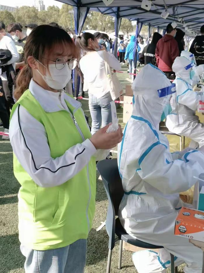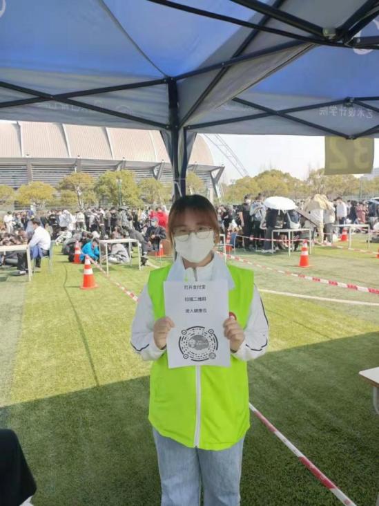面对突如其来的疫情,学校坚决执行上海市委的有关要求,秉持“应检尽检”的原则,对全校师生员工进行核酸检测,保证核酸检测“不落一人”。由于公司的师生人数基数较大,为了保障检测工作高效有序开展,学校紧急招募了一批志愿者。疫情面前没有旁观者,更没有局外人。在疫情防控形势牵动人心的时刻,轨道学子挺身而出,积极参与疫情防控志愿者活动,“疫”路同行,守护程园,王唯佳同学便是其中的一名。