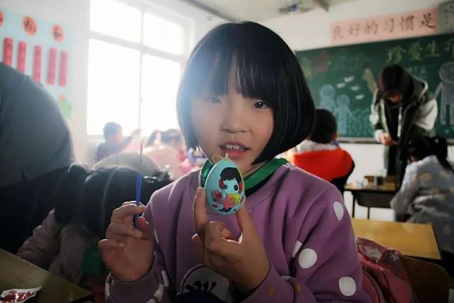 画画时,有些女生是一笔一划的慢慢涂颜料,有些男生则是将整个鸡蛋涂成同一个颜色,原因只是“我就是喜欢这个颜色”,看着他们有的脸上是认真,有的是调皮,有的是兴奋,触动的是心里的回忆和感动。
