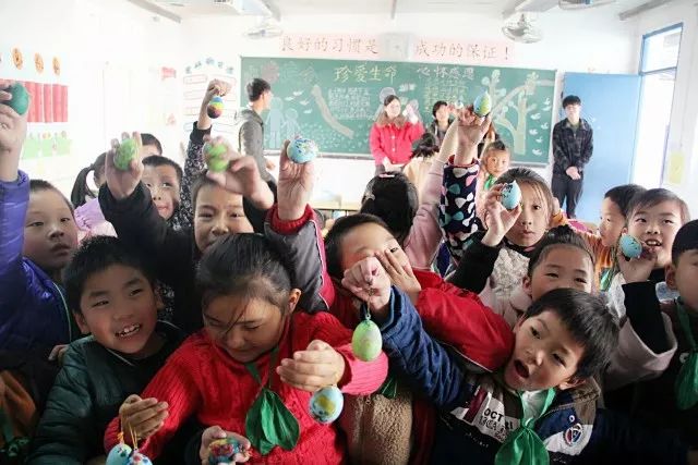 与第一次不同的是,这次远远地就可以看到小朋友们在校门口等着,热情地向大哥哥大姐姐们打着招呼,脸上洋溢着兴奋之情,也许不知不觉中彼此已经熟络了。本次支教活动内容是教员们带领马汤村小学的二年级孩子们在鸡蛋上绘画,做出自己的“个性鸡蛋”。