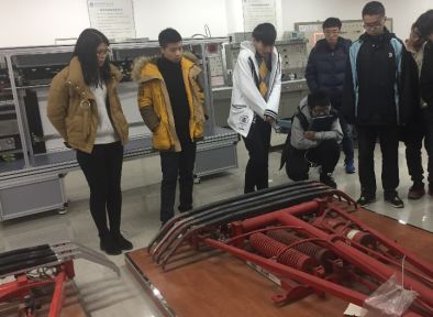 至于文永蓬老师,他带领的对于城市轨道交通车辆车厢扶手的创新设计的课题首先是让员工们讲解了轨道交通的概念,为了了解现有轨道交通车辆的结构特点与原理,老师带领同学们在实训楼的模型楼中观看了四种转向架,也了解了制图软件solid works,让同学们对于课题能有更深的认识。