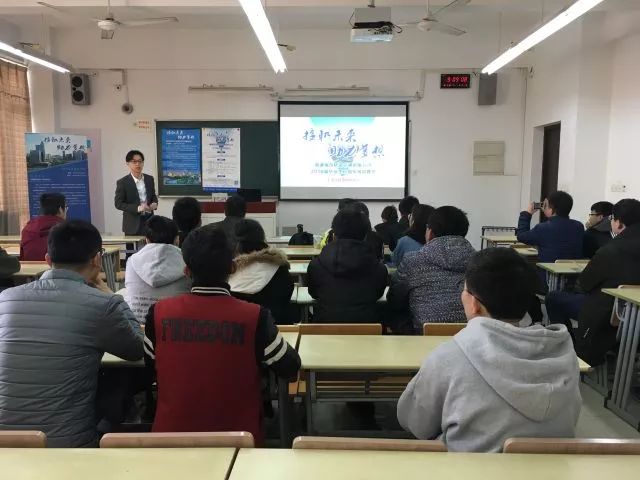 2018年3月22日上午,南通城市轨道交通有限公司一行来公司进行2018年春季校园招聘宣讲会。宣讲会于松江校区教学楼B310进行,南通城市轨道交通有限公司副总经理杨维、部门主管陆海亭、人力资源管理处周毅、张勤、孙敏及太阳集团tcy8722大三、大四员工参与了本次宣讲会。