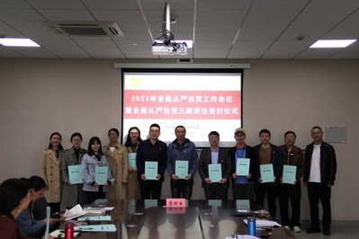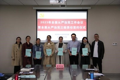 为进一步贯彻落实公司党委关于全面从严治党的工作部署要求,切实扛起全面从严治党主体责任,层层压实责任,将全面从严治党向纵深推进。4月25日上午,公司党委举行2023年全面从严治党工作会议暨全面从严治党三级责任签约仪式,学院全体党委委员、党政领导班子、各系室主任、各党支部书记参加会议。会议由公司党委书记万慧琳主持。