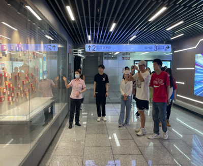 在上海地铁15号线锦秋路站车站多职能队长带领同学们详细了解车站日常运作情况,向同学们介绍智慧车站的功能特性,模拟演示“一键开关站”功能,利用监控系统实时监控出入口相关设施设备变化状况。在长风公园站参观时,工作人员介绍了“大综合”维保委外服务管理,并带领大家参观了相关设施设备,让同学们对车站的日常运营及维护有了更深刻的了解。参观上海南站时,工作人员介绍了该站因客流量大且分布不均的特点,根据日常观察和经验,采取了独特的车站客运组织方式和特色服务,考虑到大部分乘客都是去往铁路上海南站,为了给到乘客更好的出行体验,特意在客流分流口加上了指引的地标,以及为乘客提供站内地图等服务。同时,还参观了15号线的地铁车厢,作为首条全线全功能一次性开通最高等级全自动驾驶系统的地铁线路,乘务多职能队长(列控)详细介绍了列车故障时的应急处置操作,同学们也积极提问,表达出了对全自动驾驶列车浓厚的兴趣。最后,在工作人员带领下,同学们参观了被誉为“最美车站”的吴中路车站。与车站多职能队长一起游览了地铁文化长廊,了解了地铁的发展史,并看到了为地铁作出杰出贡献的行业杰出代表。多职能队长鼓励大家向前辈学习,希望大家将来也能为地铁的发展做出贡献。