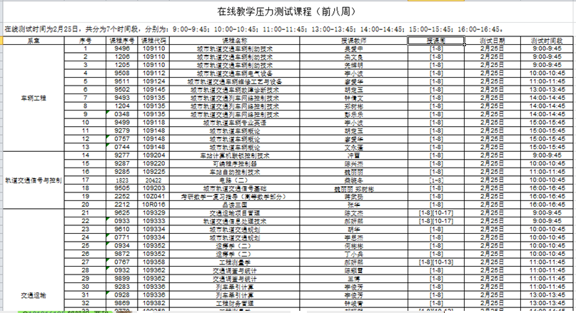为保障网课顺利开展,学院在2月25-26日进行网课平台压力测试,对于所开设网课的56门课程测试全覆盖,涉及2452人次员工。为了保障师生时间不冲突,同时确保测试准确度与质量,学院特设7个时间段测试全部课程,从早上9点到下午5点,涵盖超星泛雅+学习通APP、腾讯QQ群两个平台。并在测试后汇总师生问题与教务处、各学院反馈沟通、协调解决测试中的师生各类问题,确保网课有序正常开展。