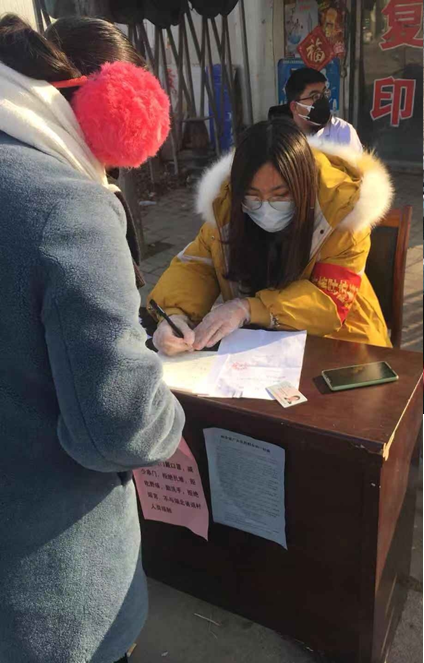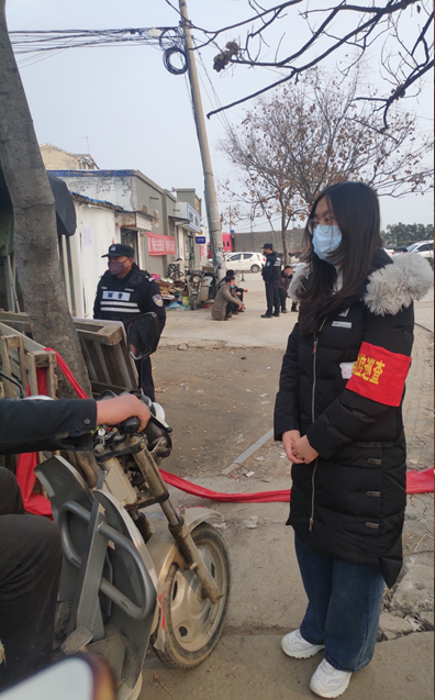 “您好,现在是新型冠状病毒疫情严重,您现在外出又被感染的危险,请您配合防控工作,返回家中,也是为了您家人的健康!”这是学院通信信号员工党支部本科生党员胡文慧在徐州市沛县朱寨镇闫集社区参与疫情防控志愿者服务中最常说的一句话。