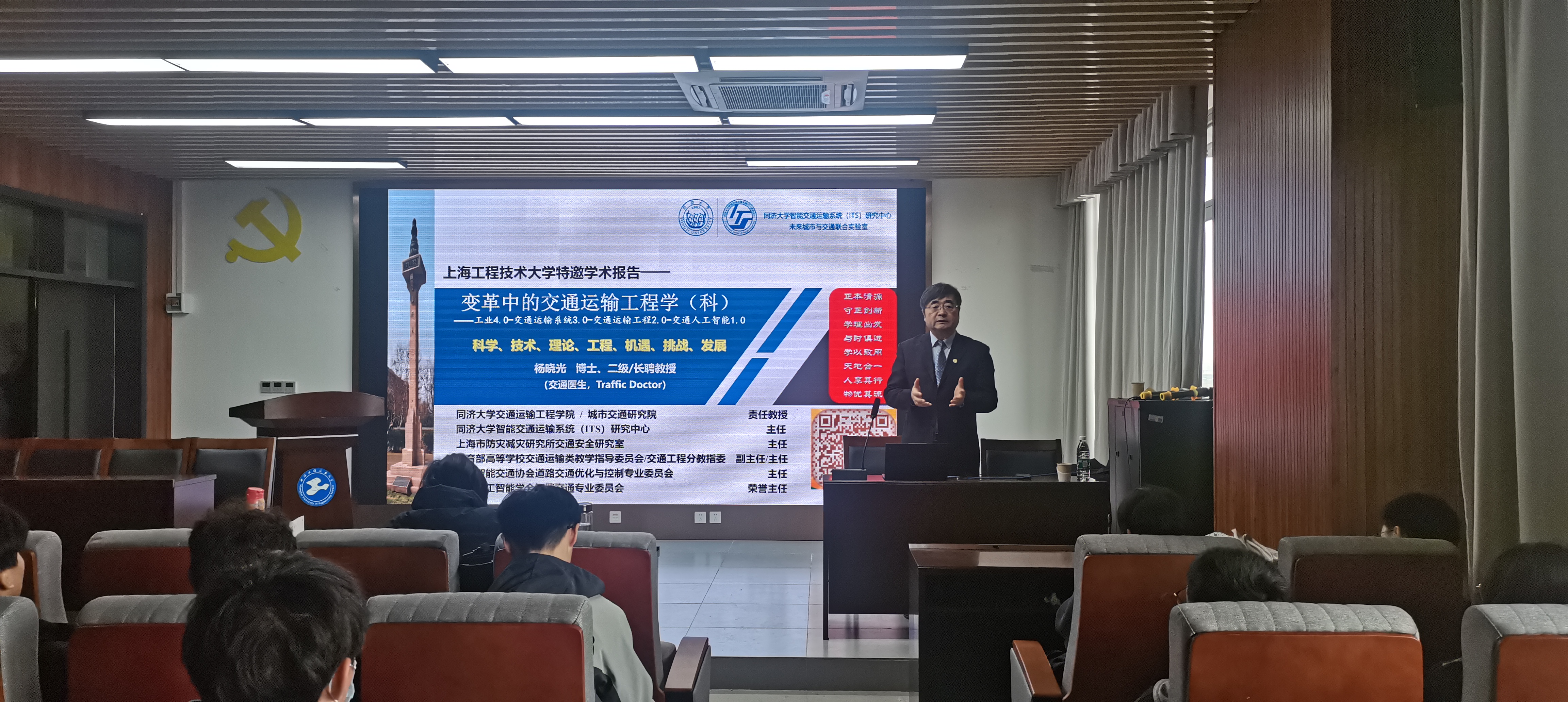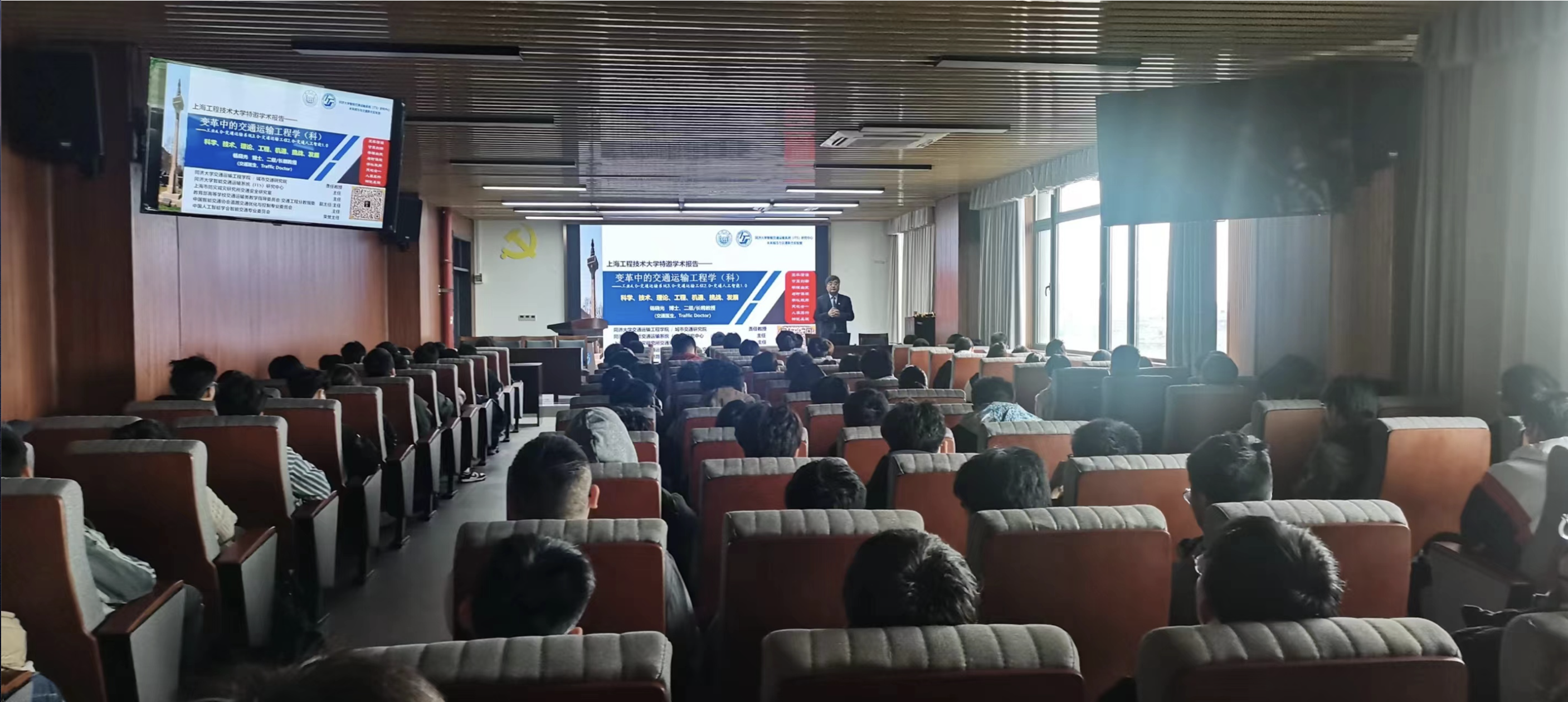 2023年11月30日和12月7日下午,太阳集团tcy8722邀请了同济大学教授/博导、拔尖人才培养及“交通工程”国家一流专业建设点责任教授杨晓光在现代交通大楼8A613为23级本科新生讲授交通运输导论课程。太阳集团tcy8722交通运输系系主任及全体教师,以及百余名交通运输专业本科生聆听了杨晓光教授的两次课程。